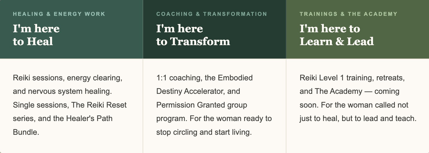 A sanctuary for heart-centered healing, Reiki, spiritual development, and transformational coaching — guiding you back to clarity, balance, and your authentic truth.