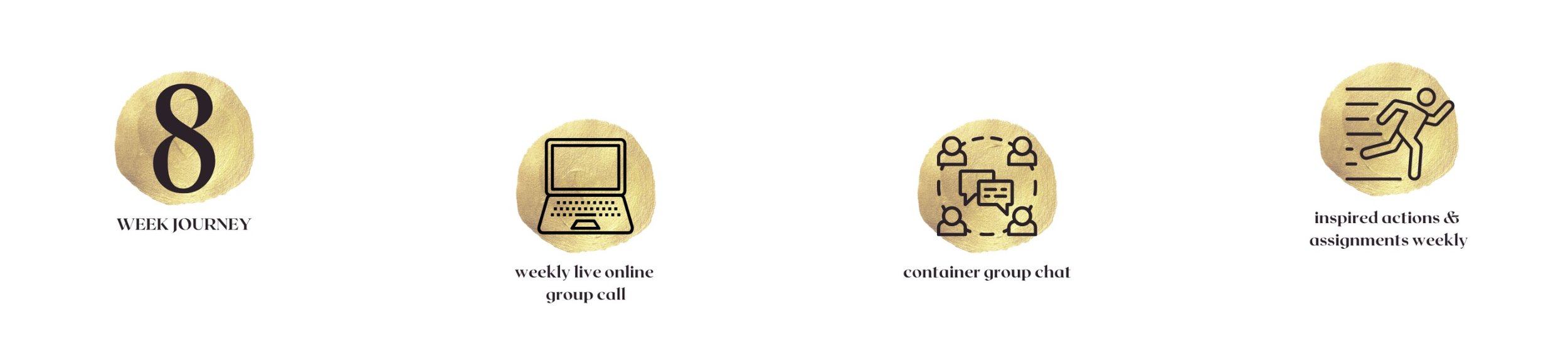 ✔️ 8 Live Weekly Sessions (via Zoom) — part coaching, part energetic rewiring, full transformation